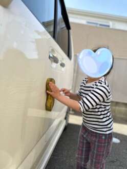 お天気が良かったので、お花にお水をあげたり、送迎用の車を洗うのをお手伝いしてくれました。
