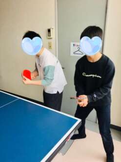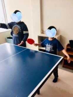 卓球部所属の中学生がスタッフと熱い熱戦を繰り広げると、それを観ていた子ども達も見よう見まねで1日中試合をしていました。