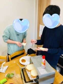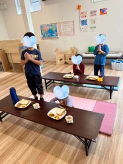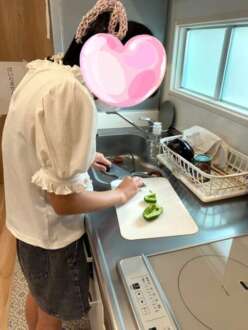 年上のお兄さんお姉さんを中心に、野菜を切ったりフライパンで炒めたりと、美味しい昼食が出来上がりました。