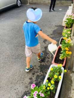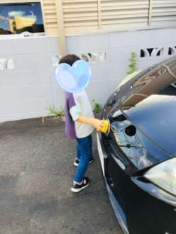お花にお水をあげる時に、男の子たちは送迎車も綺麗にしてくれました。