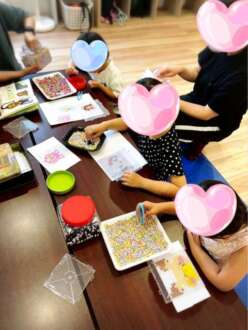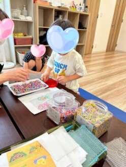 アイロンビーズやプラ板作り、ドミノ倒しなど、楽しく遊びました。