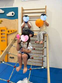 スタッフ付き添いのもと、空中ブランコやトランポリンなど、元気いっぱいに遊びました。