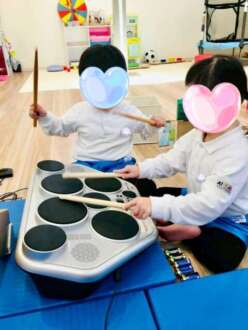 公園でも元気良く遊んだり、新しく設置された打楽器も楽しんでいましたよ。
