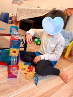室内に糸を蜘蛛の巣の様に張り巡らせ、跨いだりくぐったりして遊びました。