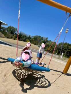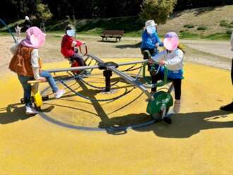 快晴の中、沢山の遊具で元気いっぱい遊び、皆んなでお昼ご飯も食べて来ましたよ!