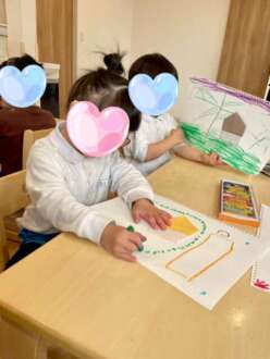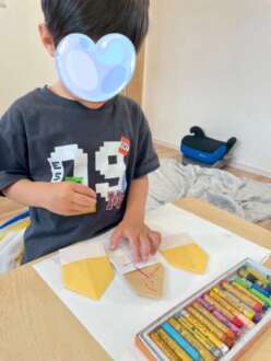午前中は折り紙を折ってお絵描きをしました。