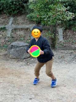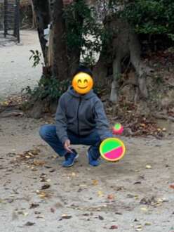 近くの神社てキャッチボールをしました。