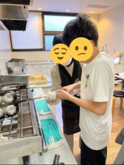熱くて重い焼き型をひっくり返すのは大変でした。