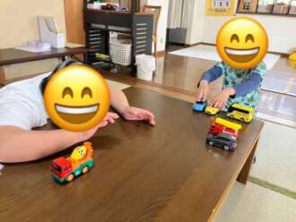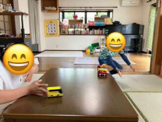 食後に2人で車で遊んでいます。