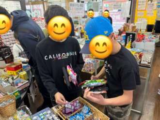 店内に入ると駄菓子がたくさんで子どもたちの目も輝いていました♪