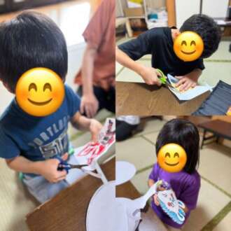 推しキャラのうちわ作りにみんな集中して色を塗っています♪