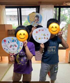 夏に向けてみんなでオリジナルのうちわ作りを楽しんでいます