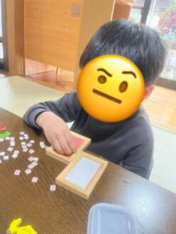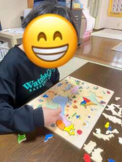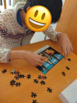 課題活動のパズルを集中して頑張っています。