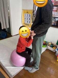 歌を聴いたり、バランスボールで遊び