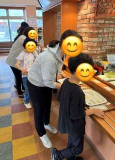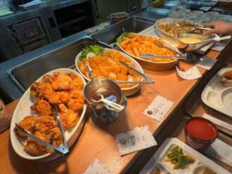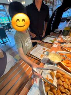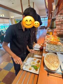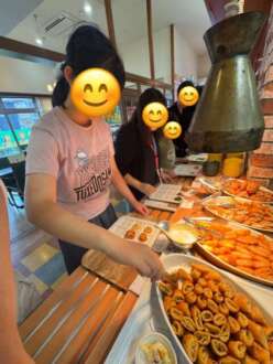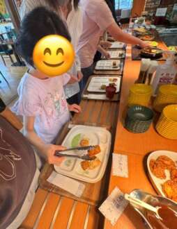 ビュッフェ形式のランチでみんな並んでいる美味しそうな料理に目を輝かしていました