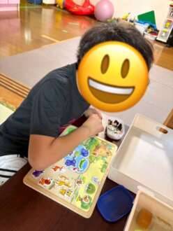 室内では玩具遊びや折り紙等で遊び