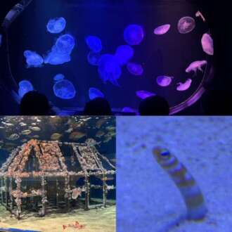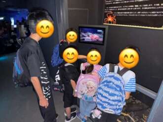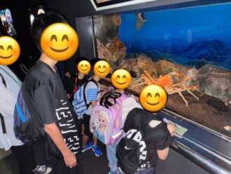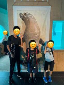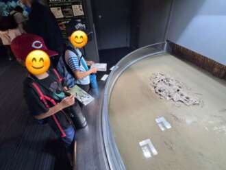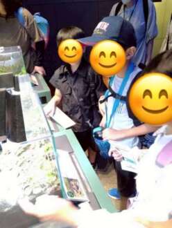 海の生き物について学習できるエリアも多く、みんな興味深々に水槽の中や説明書きを見ていました。