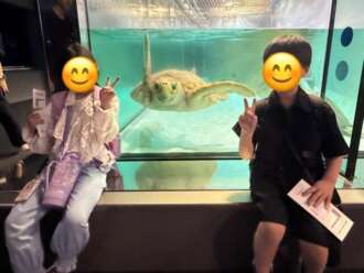 ウミガメさんもお出迎えしてくれて、記念撮影をパシャリ♪