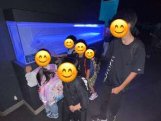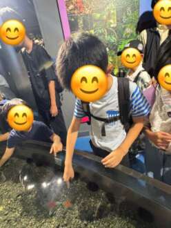 水槽で元気に泳いでいる海の生き物を見て、みんな楽しそうな表情でした♪