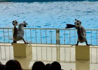 準備運動やサッカーボールを乗せてのバランスなど、見事な芸をたくさん見せてくれました♪