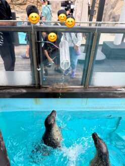 実際に、海の生き物を指で触ったり、アシカの餌やりを体験することができました。