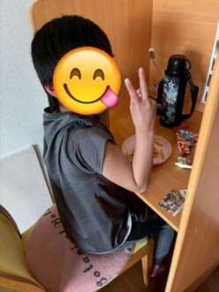 おやつを食べ、宿題と自立課題を