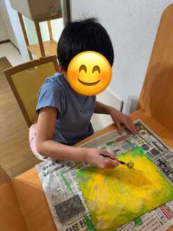 時間があったのでアクリル絵の具での創作に取り組んだお友達がいました。