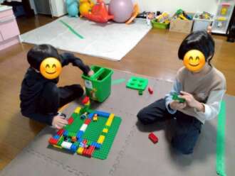 頑張った後はお友だちと玩具遊びをするなど室内遊びを楽しんでいます♪