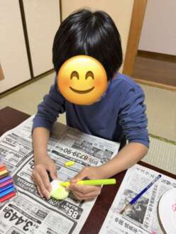 初めての取り組みということや使ったことのない画材などがあることもあり、初めは手が進まないお友だちもいましたが、徐々にイメージが持てた様子で色を塗ったり、飾りを着けたりと楽しみながら取り組むことができました♪