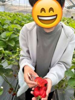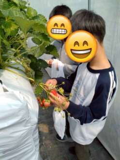 いちごを採って食べていました。
