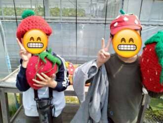 「面白い形のいちご、見つけたよ!」