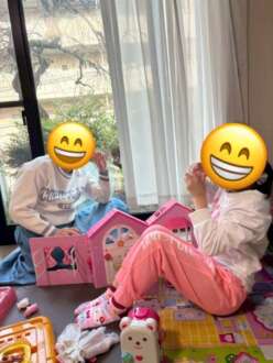 室内では、メルちゃんハウスやブロック